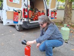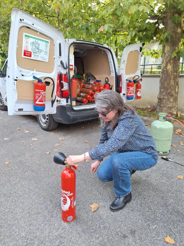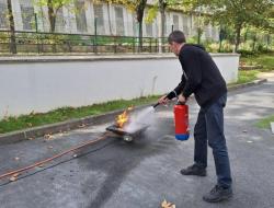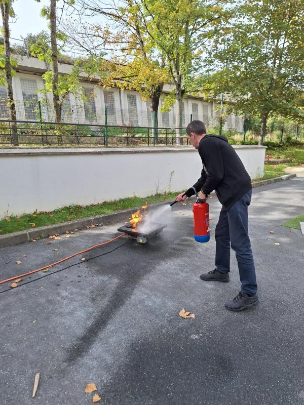 Hier après-midi, l'ensemble du personnel a été formé sur la manipulation des extincteurs.