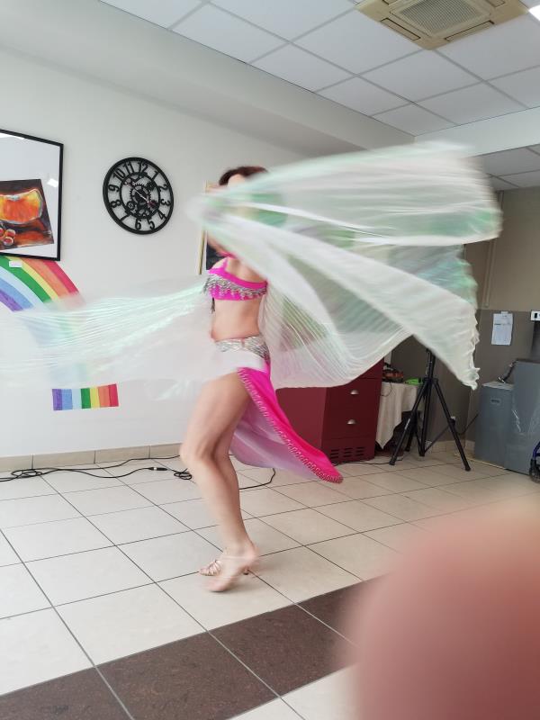 L’après‑midi s’est poursuivi par un spectacle oriental raffiné : une artiste a proposé une prestation mêlant danse et violon, interprétée sur des musiques orientales emblématiques, ponctuée de trois changements de costumes.