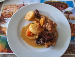 Le déjeuner a invité au voyage avec un tajine tunisien de légumes, poulet aux pruneaux/abricots et pomme de terre épicées, suivi d'une semoule au lait et raisins avec un thé à la menthe très apprécié.