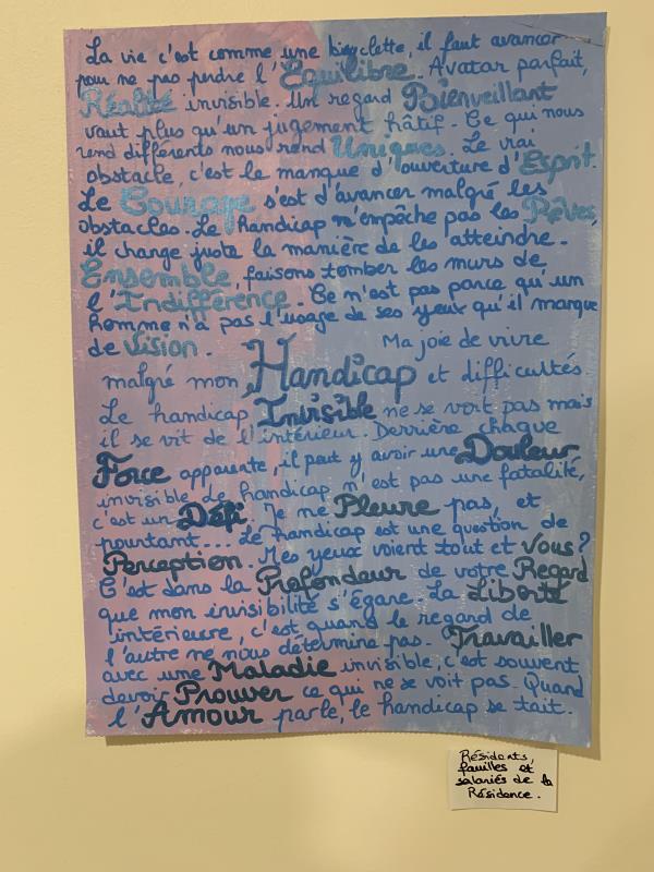 La résidence du Parc à Meudon s'est mobilisée pour la semaine européenne de l'emploi des personnes en situation de handicap (SEEPH) et a participé au concours « dessine moi le handicap ».