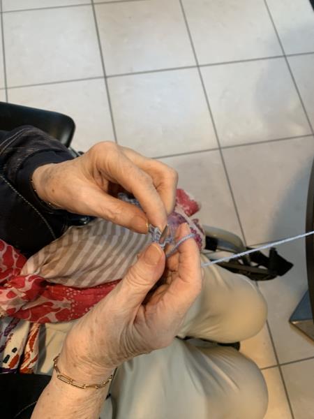 En cette belle journée tempétueuse, le prétexte était trouvé pour que certaines résidentes reprennent la laine et les aiguilles.
